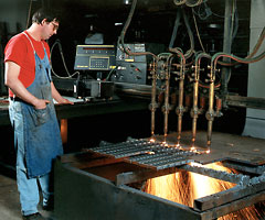 Parts are flame-cut on this 5-head microprocessor controlled burning torch.